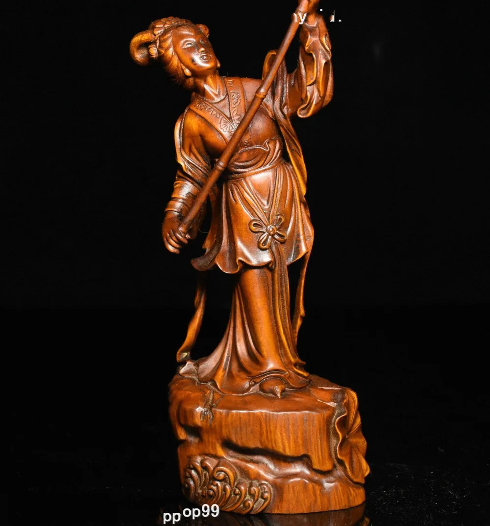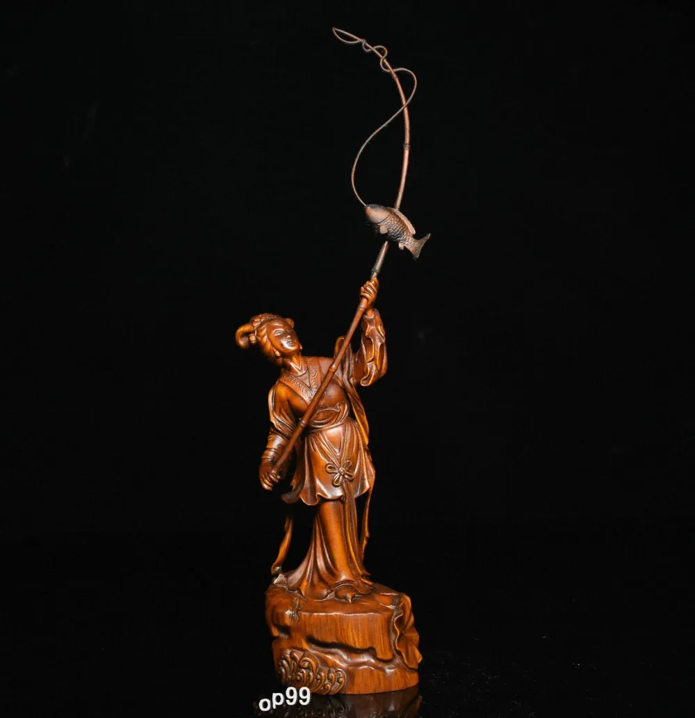 Promo wedding decoration 8 Chinese Folk Collect Boxwood Wood Carving beautiful woman Belle fishing Statue